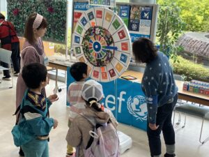 市内で国際交流に取り組んでいる団体等が日頃からの活動の成果を発表し、各種イベント等の開催を通じて、さまざまな立場の人がふれあいを深め相互理解と多文化共生を促進することを目的に開催されました。神奈川県ユニセフ協会では、 SDGsルーレットを使って SDGsについて興味を持ってもらう取り組みを行いました。